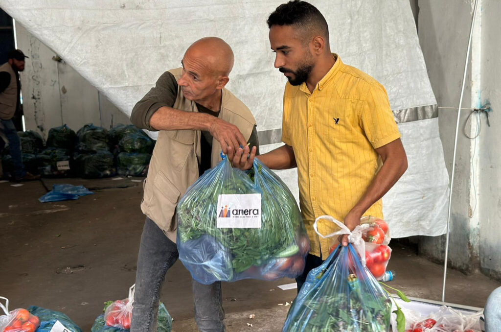 On the same day, Anera distributed 575 cubic meters of potable water across the Middle Area and Khan Younis camps, reaching approximately 191,667 people in need of clean drinking water. To support food security, 200 vegetable baskets weighing 10.25 kilograms each were distributed to displaced families in Gaza City, offering enough produce to sustain each family for five to six days. Anera also supplied 60 pots of rice in Middle Area camps, providing hot meals for around 9,000 people.