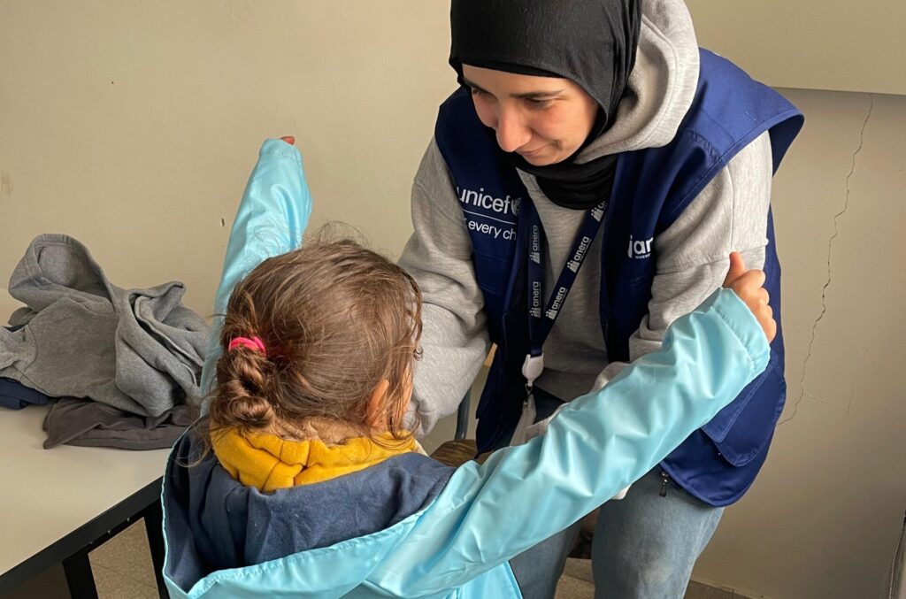In Saida, South Lebanon, UNICEF in partnership with Anera distributed 250 female hygiene kits, including diapers and battery-powered lights, to displaced families. Access to hygiene supplies is essential for dignity and health, while portable lights help families feel safer during the night.