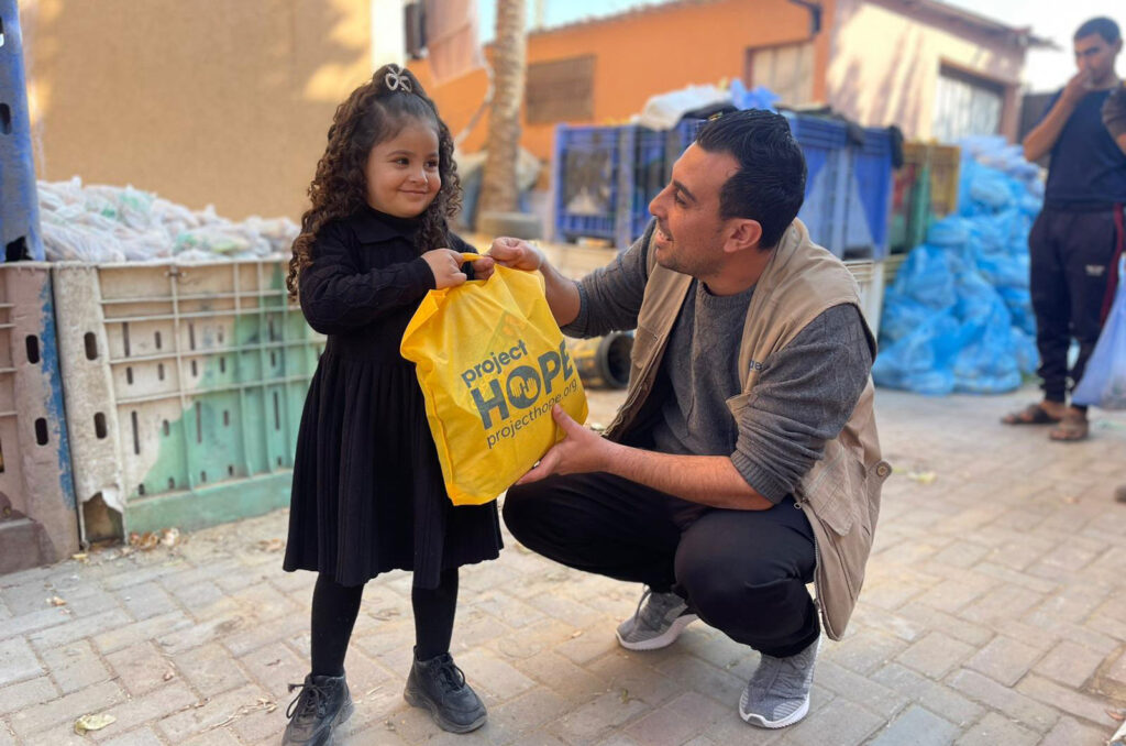 Thanks to the support from Project Hope, the team distributed 240 hygiene kits to host communities in the middle area and informal shelters in Rafah crossing.