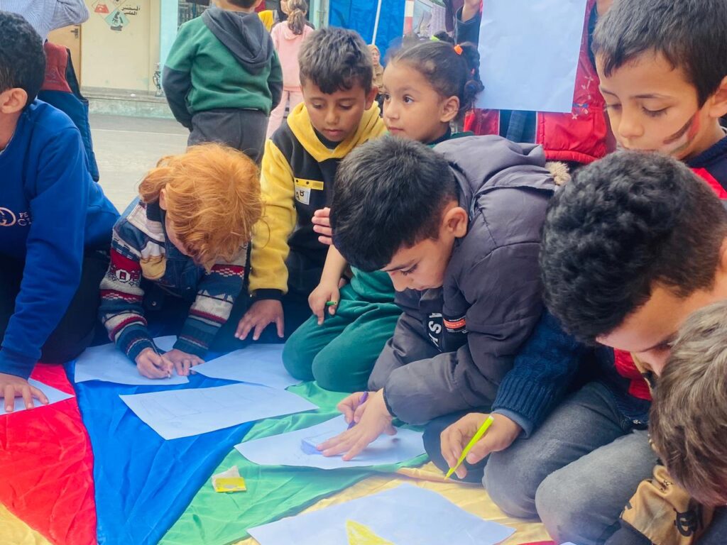 Today’s psychosocial activities were held at a UN school in Khan Younis. Approximately 400 to 450 children participated. The activities included five different types, such as games involving music, dancing, drawing, and competitive games. Counseling sessions were conducted for two groups as well as for individuals, with many parents actively participating in today’s activities. It is evident that support in terms of food, water, and mental health is urgently needed for the community.