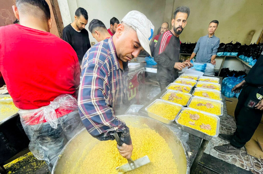Our Gaza team distributed hot meals to serve 44,000 people in Rafah, the middle area, and Khan Younis. We purchased the meat with funding from PCRF. The team also delivered, in the same areas, enough fresh produce to make 114,400 meal servings. And our cleaning contractors serviced 10 school shelters in Khan Younis.