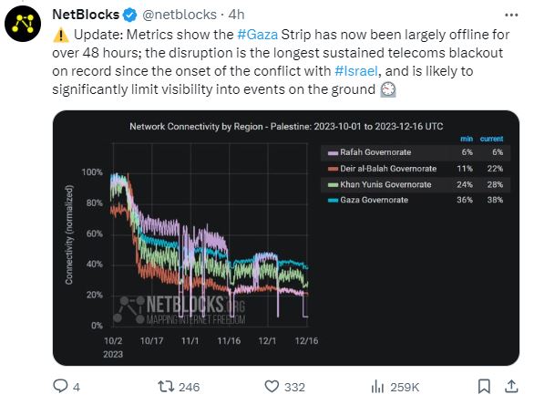 “Now 48 hours and counting. The incident is likely to limit reporting and visibility to events on the ground,” Alp Toker of the internet monitoring organization NetBlocks told the Associated Press today.
