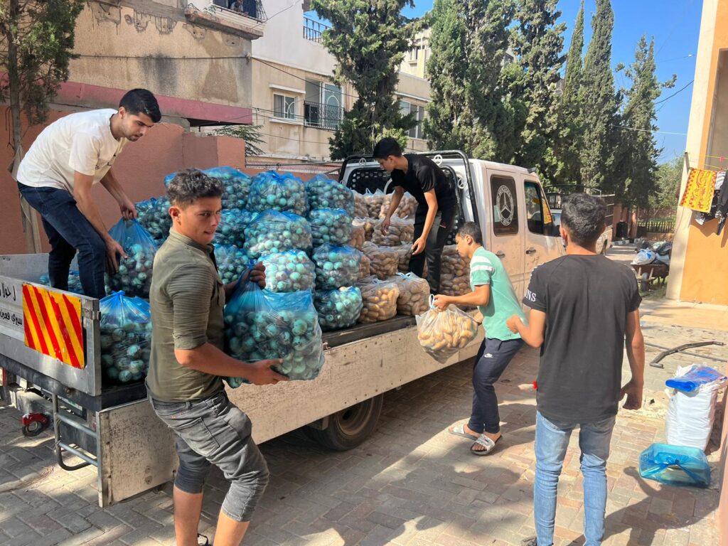 Today, we delivered another 1,000 bundles of veggies, with 500 going to shelters in the middle area and 500 to Khan Younis shelters. These vegetables will make 44,000 meals.
