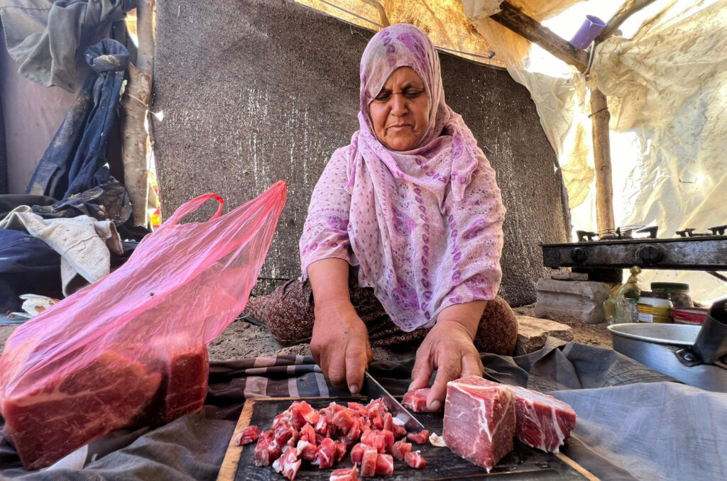 Today, Anera was able to successfully distribute an estimated 36,500 kilograms (80,469 pounds) of beef for around 20,000 displaced households at informal shelters in Gaza. Originally secured in Egypt as qurbani for Eid Al Adha in mid-June, after a prolonged coordination process and many logistical challenges we are pleased to finally be able to provide this protein for people in southern Gaza. Many families have been unable to eat meat for many months as it is scarce and very expensive. This distribution, supported by Islamic Relief USA, Muslim Aid USA and Muslim Response USA for Relief and Development, helps to meet critical nutritional needs and offers a taste of foods that for the past year have only been available to most in fantasies.