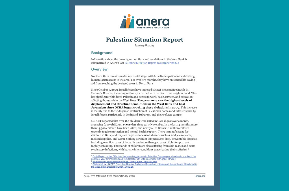 Anera welcomes the announcement of a ceasefire agreement that includes a path forward for Palestinians in Gaza who have faced overwhelming suffering over the past two years.