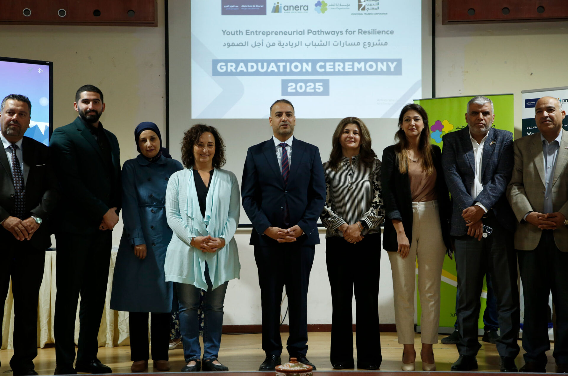 AMMAN, Jordan (Nov. 10, 2025) – Reflecting a renewed commitment to empowering refugee and host communities youths in Jordan and enhancing employment opportunities, Anera, in partnership with the Abdul Aziz Al Ghurair Refugee Education Fund, the Vocational Training Corporation (VTC), and I-Learn, celebrated the graduation of 125 young women and men who completed their participation in the Youth Entrepreneurial Pathways for Resilience project.