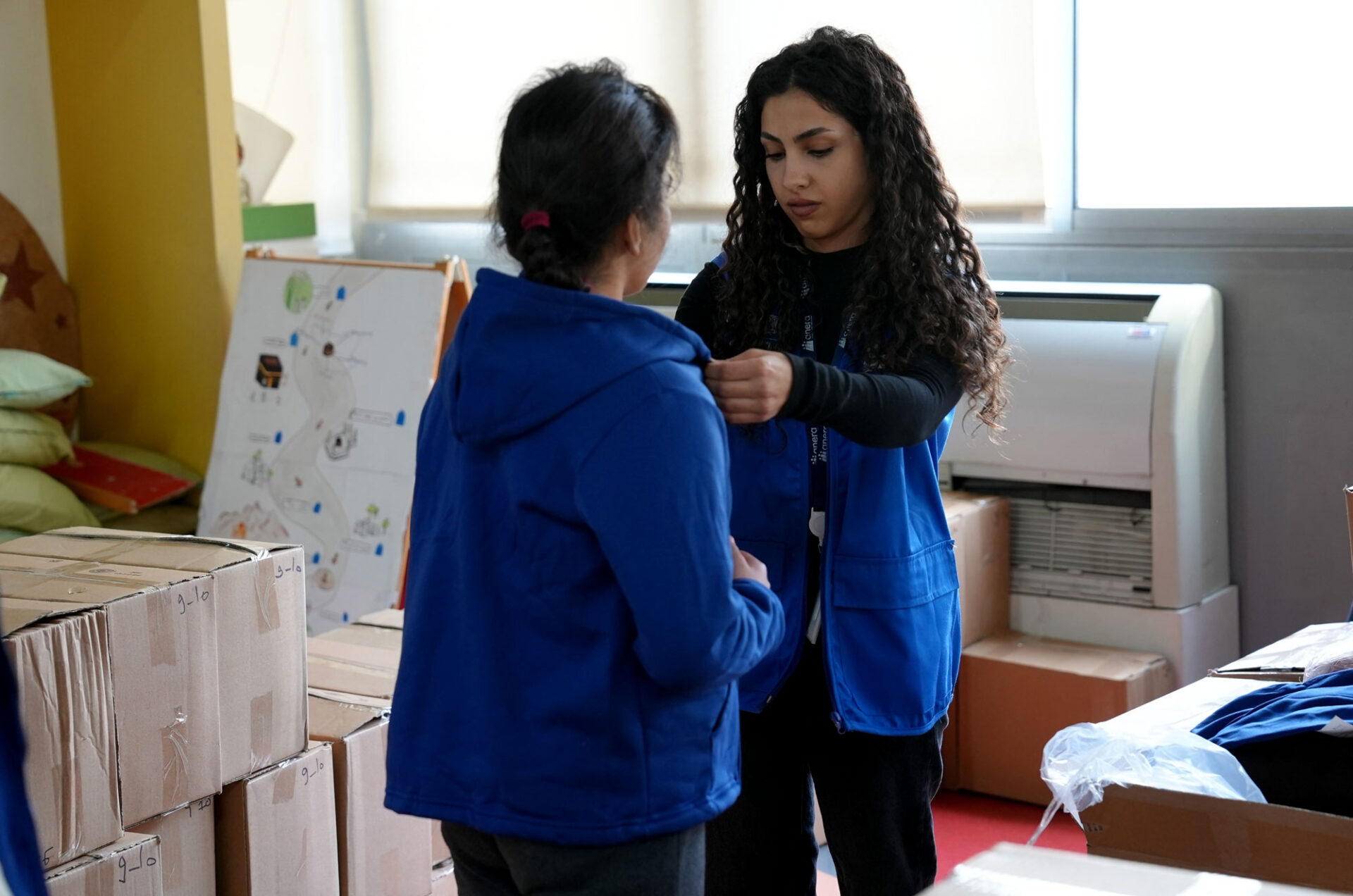 Behind each kit was another layer of impact. The winter clothing was produced by students enrolled in Anera-supported sewing courses, in partnership with UNICEF, creating income opportunities while helping participants gain hands-on experience and skills that can open doors to future employment.